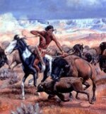 Perchè gli uomini non macellavano i bisonti uccisi durante la caccia comune? Premesso che ciò avveniva solo in quella grande occasione che era la caccia collettiva, sacra e ritualizzata, c’è anche da dire che macellavano e scuoiavano, oltre agli altri animali, anche il bisonte quando veniva ucciso dal singolo guerriero in una solitaria azione di caccia.