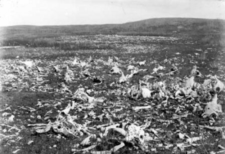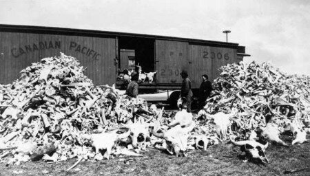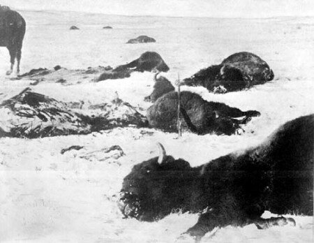 Notava il rancher Granville Stuart nel Montana, 1880: “Dal Porcupine fino a Miles City il terreno è generosamente punteggiato, da ogni parte, di carcasse di animali uccisi soltanto per le loro pelli. Ci sono zone in cui essi giacciono quasi toccandosi l’un l’altro, ancora relativamente intatti nella carne, mentre le pelli sono stoccate in quantità incredibile lungo la pista di caccia. Lo spettacolo è spaventoso… uno spreco terribile della carne migliore di questo mondo!”.