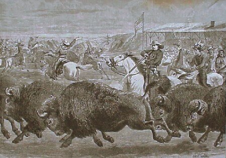 Simulazione della caccia al bisonte nello spettacolo di Buffalo Bill