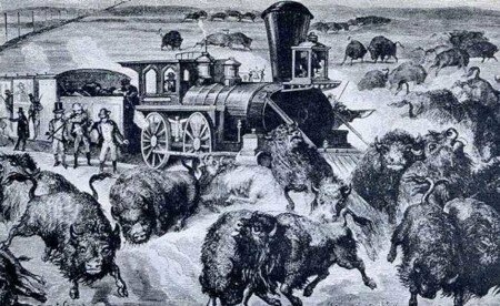 A volte si cacciava il bisonte sparando dai treni in corsa…