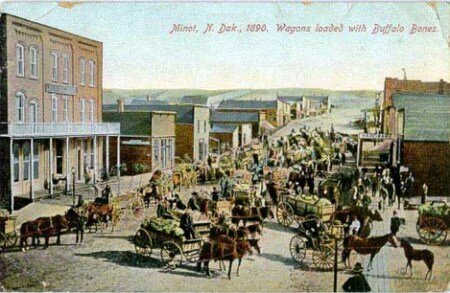 I carri arrivano in città stivando montagne di ossa di bisonte