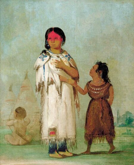 Donna Assiniboine con bambina – 1832 – dipinto di G. Catlin