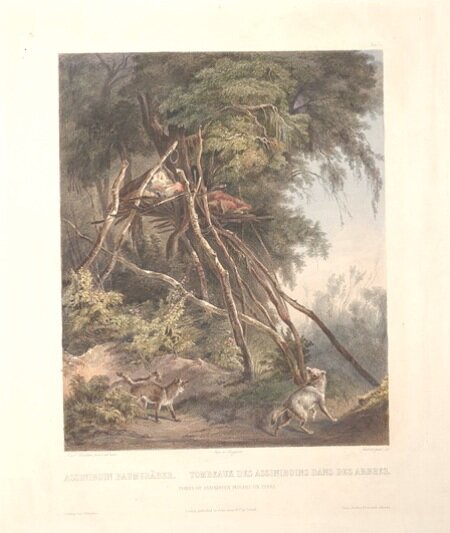 Gorge Catlin, l’etnografo e pittore che visitò gli Assiniboine durante il suo viaggio nell’Upper Missouri, nel 1832, riferisce che il nome della tribù risale ad un termine Ojibwa, che significa “coloro che fanno bollire le pietre”.