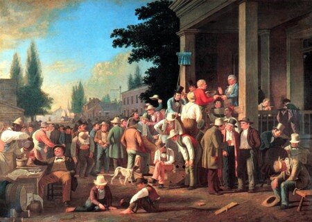 Quello ritratto da Bingham è, certamente, un west più docile, meno rumoroso, intensamente pacato nelle sue scene, specie quelle cittadine o comunque piene di folla, dove la tensione drammatica degli avvenimenti sembra attenuata dall’apparente bonarietà degli uomini, delle donne e dei bambini. Su tutto e dovunque domina il candore e la gioia della gente, che sembra guardare al futuro con molto ottimismo ed esultanza.