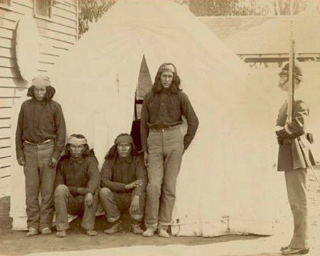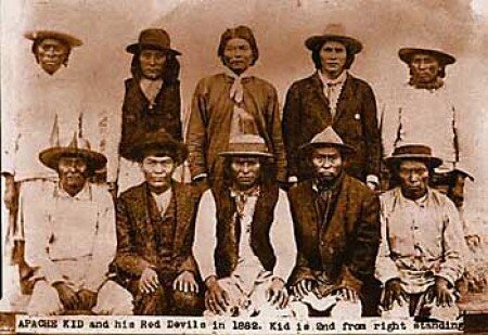 Gli Apaches processati furono fotografati in gruppo da qualche giornalista; appaiono come un gruppo di uomini laceri. Solo Kid, con un cappello di feltro e un fazzoletto annodato, appare il più lindo. Evidentemente l’ambiente di una prigione dell ‘800 aveva lasciato il segno sui prigionieri.