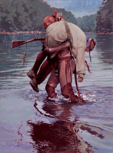 Il loro unico sforzo fu quello di abbattere alcuni alberi sopra il forte, l’azione non ebbe successo ed allora attaccarono violentemente”. La postazione venne comunque assediata “per cinque giorni”, gli Irochesi resistettero valorosamente, poi, chiesero di parlamentare e invitarono gli Ottawa “a continuare il loro viaggio tranquillamente”; gli Irochesi si dissero disposti a non inseguirli, “ma non bisognava fidarsi”. Quando “gli Iroquois si avvicinarono alle canoe, gli Outaouas tentarono di gettare sulla riva le mercanzie dei francesi che erano imbarcate con loro”, allora questi invitarono gli Ottawa a non “far nulla del genere”, alla fine gli indiani furono convinti “a scendere a Three Rivers”, dove vi erano parecchie missioni per gli Huron che erano stati radunati da padre Ragueneau (Relazione del 1650). Però, né la “Relazione” del 1650, né il Charlevoix fanno menzione del Ragueneau e dei suoi Huron portati nel Quebec, soltanto il Perrot ci ha conservato questo evento importante. Comunque, un missionario francese sarebbe stato maltrattato su un isola del fiume dal capo algonchino chiamato “Le Borgne”. Il fiume “Creuse” era uno dei numerosi affluenti dell’Ottawa River, e “un po’ sotto la sua bocca si incontra l’isola di Allumettes”, chiamata anche “Le Borgne Island”, ancora “più in basso vi era l’isola di Grand Calumet” e poi “le rapide e il portage” con lo stesso nome. Quindi, tra il fiume “Creuse” e la “Calumet” vi era una grande isola comunemente chiamata “Isle du Borgne”, ma anche conosciuta come “Isle de Allumettes”. La “Isle du Borgne” prendeva il nome da un potente capo degli Algonkin, un leader con un occhio solo che aveva “sotto il suo comando 400 guerrieri, ed era considerato il terrore di tutti i popoli, anche degli Iroquois”. Questo capo “esigeva pedaggi da tutti i viaggiatori che scendevano alla colonia francese”, era lui che “dava il permesso di passare da quel posto, e senza il suo permesso non permetteva a nessuno di andare oltre”. Quando gli Huron raggiunsero la parte settentrionale dell’isola, “avevano intenzione di passare dal villaggio, secondo consuetudine, per chiedere il permesso al capo”, ma padre Allemand disse loro che i francesi erano “i padroni del paese e che non erano tenuti a farlo”, così li persuase a seguire un piccolo canale.