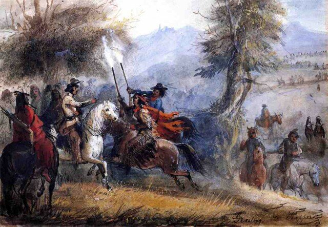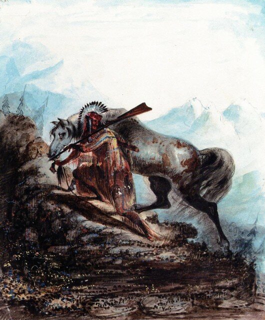 Alfred Jacob Miller (2 Gennaio 1810 – 26 giugno 1874) nacque a Baltimora, nel Maryland, dove frequentò le scuole locali desiderando di diventare pittore. Seguì le sue prime lezioni d’arte con Thomas Sully e dopo aver realizzato qualche pittura a Baltimora e Washington, nel 1833 si recò in Europa per perfezionare le sue capacità, sostenuto dalla sua famiglia. Miller trascorse molto tempo a Parigi, ma visitò anche Bologna, Venezia e la Svizzera. In quel tempo strinse amicizia con gli scultori Bertel Thorwaldsen e Horatio Greenough e il pittore Horace Vernet. Studiò lungamente le tecniche degli antichi maestri nei musei, come era uso a quel tempo.