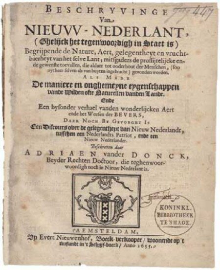 Il frontespizio della “Descrizione della Nuova Olanda” di Van der Donk