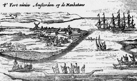 Nuova Amsterdam, capitale della Nuova Olanda, occupava una quindicina di strade circa intorno al Forte, e la presenza di un’isoletta, ora interrata, non preoccupò gli abitanti, che costruirono un ponte sopra il gracht, il canale, come nella vecchia Olanda. Per la maggior parte della sua storia ebbe meno di 1000 abitanti: nel 1643 ne aveva a malapena 600, che parlavano 18 lingue diverse, di cui la metà Olandesi e gli altri per lo più Tedeschi, Inglesi, Africani, Scandinavi, Francesi, Ebrei, Indiani e Meticci.