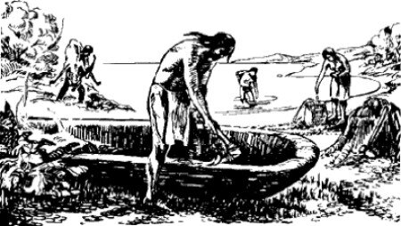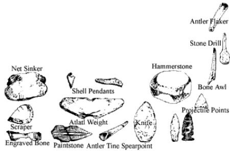 In quest’epoca fu probabilmente introdotto l’uso della canoa. Le pelli animali venivano forate e cucite con punteruoli d’osso o con aghi. Gli Indiani adoperavano pezzi di corno per sfaldare il quarzo, e qualche volta costruivano punte di lancia con l’estremità di un corno. Anche qualche raro ciondolo di conchiglia intagliata, usato come articolo decorativo, risale probabilmente a quest’epoca.
