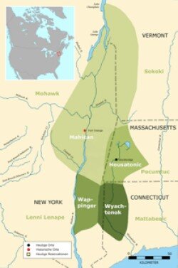 Le malattie e le guerre commerciali avevano ridotto i Mahican a circa 500 persone nel 1700, la caccia commerciale aveva spinto gli uomini sempre più lontano e favorito la dispersione in piccoli villaggi e singole unità familiari abitative, mentre la lunga casa restava la residenza del capo e sede delle cerimonie comunitarie. Gli Olandesi, più mondani degli altri colonizzatori protestanti e assai più laici di quelli cattolici, non avevano fatto alcuno sforzo per convertire e acculturare gli indiani, ma le conseguenze negative della frontiera coloniale, l’alcolismo, le carestie e le malattie fecero vedere i missionari come una risorsa e il cristianesimo come una possibile spiegazione migliore del mondo, che la religione nativa non riusciva a coprire in modo soddisfacente, tanto che le chiese protestanti non riuscivano a far fronte alle richieste di evangelizzazione da parte delle comunità indiane. Intorno alle missioni si raggrupparono villaggi di indiani cristiani, tra cui il più noto Stockbridge, che dallo Stato di New York fu trasferito più volte, anche a causa della divisione tra “progressisti”e “tradizionalisti”, fino a fermarsi in Wisconsin dove esiste tuttora. Gli Stockbridge incorporarono una parte dei Munsee e nel 1843 ottennero la cittadinanza americana, mentre una minoranza riceveva la suddetta riserva a Shawano County in Wisconsin.