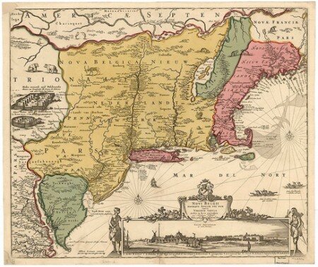 Il racconto di Giovanni da Verrazzano del 1524 è la prima descrizione della Baia di New York che abbiamo e, dalla cartografia, appare evidente che altri Europei lo seguirono tra questa visita e quella di Hudson nel 1609. Nel 1614 venne istituito un posto commerciale presso l’attuale capitale dello Stato di New York, Albany, e negli anni successivi anche altri forti commerciali sui fiumi Connecticut e Delaware e, a causa della decimazione dei castori nelle aree costiere, sempre più a monte dei bacini fluviali. Quando il commercio delle pellicce costiero terminò, gli indiani di quest’area, da quel momento in poi, vennero considerati un disturbo. Gli olandesi cercarono in ogni modo di mantenere rapporti amichevoli con gli indiani dell’interno, non solo come clienti-fornitori, ma anche nella speranza di dirottare dalla loro parte il ricco commercio delle pellicce dalla valle del fiume San Lorenzo a quella dello Hudson, strappandolo ai francesi, una politica che sarà proseguita dagli inglesi (Brasser 1978).