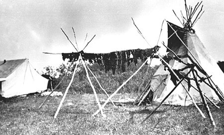 L’altro modo di conservare la carne consisteva nel farla essiccare al sole. Si appendevano le strisce di carne a dei bastoni orizzontali, sostenuti da due grucce, fuori dalla portata dei cani e dai lupi, in zone del villaggio ben esposte al sole. Si lasciava così la carne per diversi giorni fino a che si seccava al punto da poter essere trasportata senza pericolo che si guastasse.