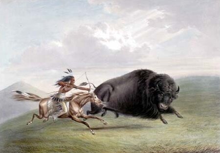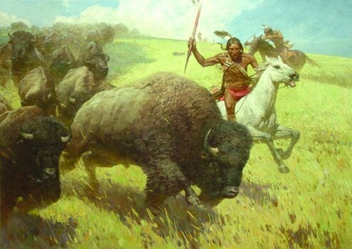 Il bufalo quindi era animale sacro,era un dono del grande spirito che veniva cacciato ma il cui spirito era venerato. Veniva offerto e mangiato quasi con un rito religioso.