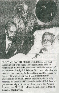L’uomo che faceva l’affermazione affermava essere lo stesso Jesse James, alias Frank J. Dalton, che aveva deciso di apparire a Lawton nel 1948 perché come aveva promesso ai fratelli dei K.G.C. se mai fosse arrivato a 100 anni di vita, avrebbe rivelato la sua vera identità.