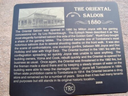Targa di fronte all’Oriental saloon
