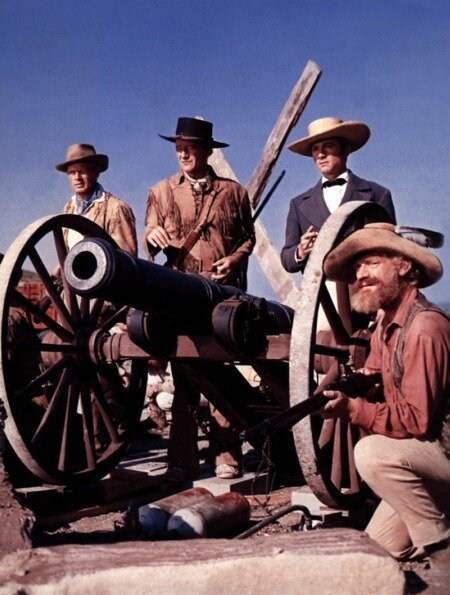Rappresentare sullo schermo una figura tanto popolare nel West, quanto discussa e zeppa di difetti, senza intaccarne l’aureola eroica, non poteva essere considerata un’impresa da poco. John Wayne riuscì perfettamente a coniugare gli eccessi dell’uomo con le sue aspirazioni ideali, modellando un eroe in cui i pregi superavano le carenze. Accentuò la sua insofferenza verso i “damerini” come William Travis, esponenti della cultura del Sud più colto e aristocratico, ma esaltò le connotazioni più nobili del personaggio: l’abnegazione e la capacità di sacrificarsi per la giusta causa dell’indipendenza texana. La vicinanza e i suggerimenti di John Ford durante la lavorazione del film contribuirono senz’altro ad arricchire una vicenda prettamente militare, aggiungendovi quel pizzico di humour che nei film del regista di origine irlandese era sempre presente.