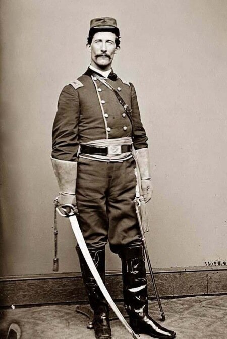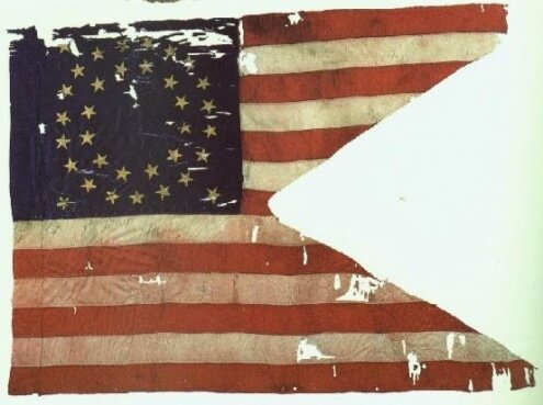 Che tremenda delusione per il bambino in me (che si ricordava dei film e dei fumetti visti e letti in gioventù) aver scoperto che un particolare della scena, e cioè la bandiera al vento, era totalmente fasullo. Già, perché la Old Glory (la “Vecchia Gloria” vanto e onore delle truppe proudly made in USA) venne ufficialmente concessa alla cavalleria soltanto nel 1887, epoca nella quale le guerre indiane erano ormai al definitivo tramonto! La Old Glory era stata infatti concepita inizialmente solo come bandiera navale; l’artiglieria ottenne il diritto di portarla in battaglia (al fianco naturalmente degli altri stendardi) nel 1834 seguita a ruota dalla fanteria nel 1841; come detto la cavalleria dovette aspettare molto di più. Durante gli scontri con gli indiani, i cavalleggeri usarono invece una bandiera che era comune a tutte le armi e raffigurava un’aquila (l’arcinota aquila di mare testabianca, simbolo della regalità ed emblema degli USA) in campo blu, sovrastata dalle stelle (una per stato), con un fascio di frecce stretto in una zampa e un ramo di mirto nell’altra (il significato è chiaro: l’aquila americana è capace al tempo stesso di muovere guerra e di portare pace). Per le singole armi variava semplicemente la dimensione dello stendardo: per la fanteria era di 3,70 mq mentre per la cavalleria (vista la necessità di praticità e di ridotto ingombro) di solo mezzo metro quadrato.