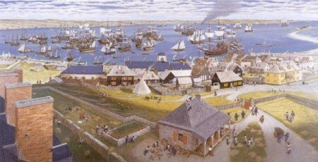 La Baia di Gaspé nel 1758 –disegno di Peter Mazell