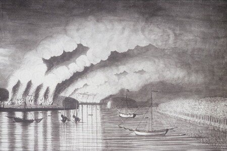 La distruzione della città di Grimrose – disegno di Thomas Davies