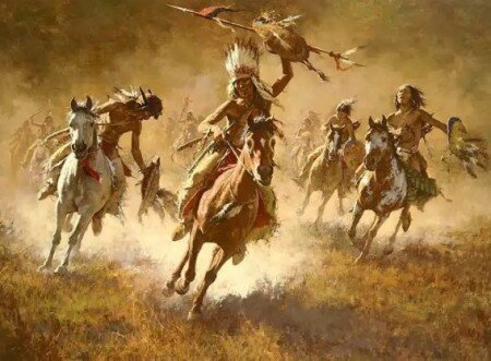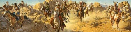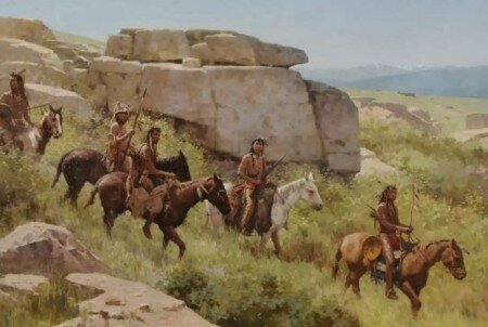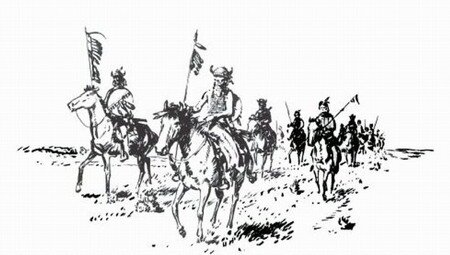 A circa 200 yards cavalcavano, tranquillamente, 11 Comanches in fila indiana. I guerrieri avevano lance, frecce e archi, il capo, davanti a tutti, teneva in mano un fucile decorato.