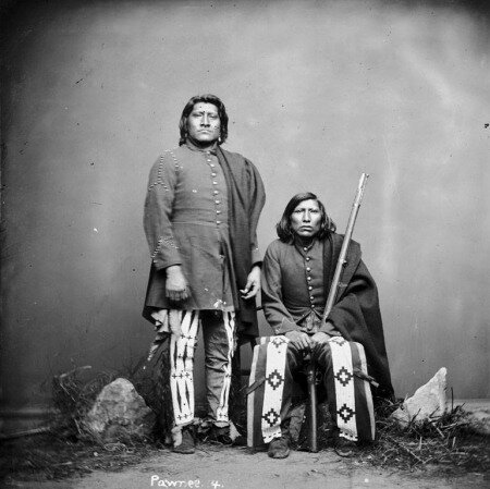 I coloni che erano giunti in quella parte del territorio impararono presto a conoscere i veri abitanti di quelle terre, gli indiani Pawnee, che vi si trovavano da almeno trecento anni. I loro grandi e numerosi villaggi si trovavano una volta lungo il corso centrale del Platte e i suoi tributari, in particolare il Loup. Più di 15000 persone affollavano quei villaggi, ma ora, nel 1869, poco ne rimaneva. Decenni di epidemie, assalti subiti dai loro eterni nemici, i Lakota, carestie, discesa delle locuste e la marea dell’invasione americana avevano ridotto i Pawnee a soli 2400 membri, ancora divisi in quattro bande ( Chawi, Kitkahahki o Republican, Pitahawirata o Tappage, Skiri o Loup) e concentrati in un’unica riserva squadrata localizzata a circa 25 miglia dal posto McMurty, dove ripetute cessioni territoriali avvenute nel 1831, 1848, 1857 ne avevano progressivamente ridotto l’estensione . Nella riserva i Pawnee erano stati affidati agli agenti quaccheri, che miravano a trasformarli in agricoltori cristianizzati. I Pawnee avevano col tempo visto passare i primi esploratori, poi avevano subito la devastante epidemia di vaiolo del 1831, quindi i ripetuti attacchi sioux e visto riempirsi le loro terre di Americani e privarsi delle varie specie di selvaggina. Infine nel Marzo 1869 avevano dovuto sopportare l’uccisione, da parte di uomini bianchi, di nove loro uomini, scouts per l’esercito congedati che erano sulla via del ritorno, in Ellsworth County, Kansas. Il crimine restò impunito.