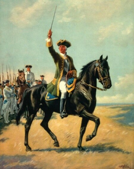 L’arrivo degli Inglesi ai Piani di Abrahams. I personaggi sono Wolfe e Montcalm