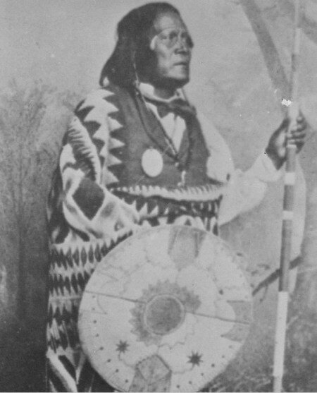 Tuttavia, sembra ricavarsi qualcosa di più interessante all’interno de “La Repubblica del Messico nel 1876”, di Antonio Garcia Cubas, dove si apprende che tra le armi degli Apaches vi era “uno scudo…di pelle… ornato di piume e con piccoli specchi nel centro, con i quali riescono ad abbagliare il nemico.” Purtroppo, Garcia Cubas non specifica se tale singolare ornamento dello scudo fosse in uso presso un gruppo Apache in particolare. Egli lo attribuisce in generale agli “Apaches”, quasi come a dire che tutti loro, indistintamente, fossero soliti porre specchi al centro dei loro scudi.