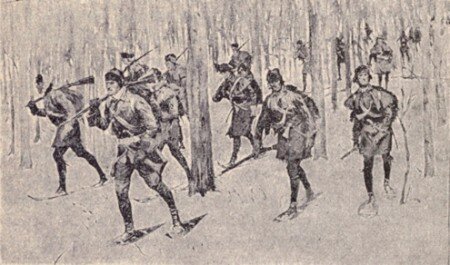 I Rangers in marcia verso Fort Carillon – disegno di Frederic Remington
