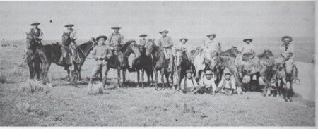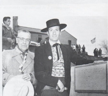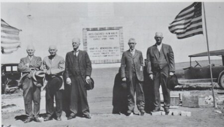 La foto in questione è del 30 settembre 1926 e in essa appaiono cinque pionieri dei primissimi tempi di Dodge City. Da sinistra: Hamilton (Ham) Bell, Orlando Brick Bond, W. H. Lord, George Reighard, e D. W. Barton. La foto è stata scattata davanti alla pietra che ricorda Fort Mann, il primo Forte costruito lunga la pista per Santa Fe.