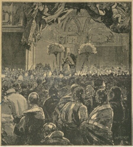 Potete immaginarvi lo spettacolo strano, fantastico che presentò la sfilata della corte pontificia. In mezzo ai costumi variopinti degli indiani, i quali al vedere il papa portato in alto su quella sedia dorata, fiancheggiata de quei grandi ventagli bianchi, s’inginocchiarono a terra sollevando le braccia e gridando continuamente con quanto fiato avevano, come in estasi.