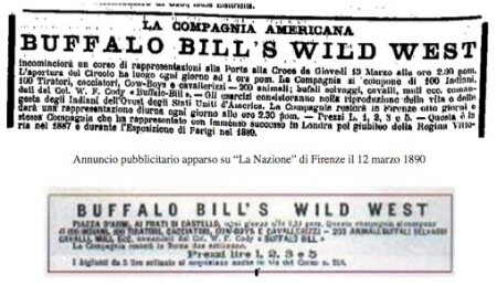 E mentre a Roma il successo arrideva a Buffalo Bill, alcuni suoi indiani erano già a Firenze a montare la palizzata ai Prati della Zecca, tappa successiva a quella nella Capitale: “Sono già quasi finiti i lavori della palizzata, che deve recingere i prati della Zecca, dove darà i suoi spettacoli la Compagnia, condotta dal colonnello Cody (Buffalo – Bill). A Roma ha avuto ora uno strepitoso successo ad ogni rappresentazione; ma ci vogliono ogni giorno migliaia e migliaia di spettatori a coprire le spese enormi. A Firenze gl’indiani Compagnia Buffalo – Bill e il loro capo, arriveranno dopo aver avuto la benedizione del Sommo Pontefice che li riceve in udienza speciale”.