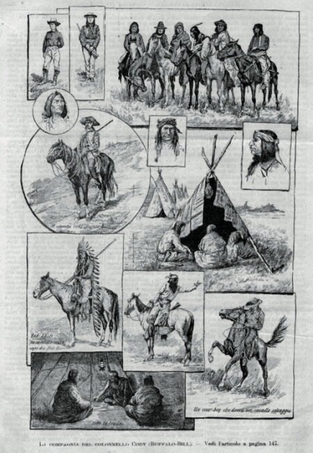 A ricordo di quell’incontro, nella tenda di Buffalo Bill, vi erano “immagini di tutti i generi: il Papa, Mazzini, il re Umberto, il Principe di Napoli, Garibaldi e Cuor di Gesù”40.