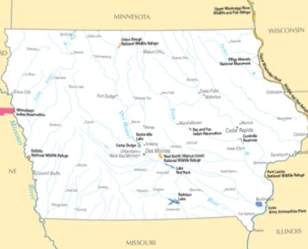 Lo Stato dell’ Iowa con indicazione delle Riserve Indiane