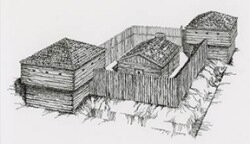 George W. Jones, che più tardi sarebbe diventato Senatore degli Stati Uniti per lo Iowa, arrivò nella zona di Sinsinawa Mound nel 1827, e là, nel 1828, allestì uno stabilimento minerario. La prima struttura dell’insediamento fu la capanna di tronchi di Jones stesso. La capanna misurava circa 15 metri per 5, e ogni stanza era dotata di porta e finestra.