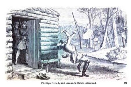 Al mattino la banda, composta da circa 30 Nativi, ritornò alle sue posizioni nascoste e aspettò i coloni. Quando questi si svegliarono, Brigham e Phillips uscirono sulla veranda dove conversarono per qualche minuto, non accorgendosi della tracce di mocassini intorno alla proprietà. Phillips decise di raggiungere la sua capanna, a circa mezzo miglio da Ament, per finire di scrivere una lettera ai suoi genitori. Bringham, che aveva deciso di accompagnarlo, entrò un momento nella sua capanna; una volta dentro udì un colpo d’arma da fuoco. Phillips, mortalmente ferito, cadde al suolo, colpito da due palle di moschetto. La banda di assalitori si lanciò immediatamente su di lui armata di tomahawk. Mentre i guerrieri circondavano la casa, gli altri coloni si precipitarono nella baracca, chiusero la porta e puntarono le armi attraverso le crepe dei muri. Addirittura l’arma di Hodge venne in contatto col petto di Girty: ciò causò il ritiro dei guerrieri nei boschi. Il giovane Dimmick, spaventato al punto di implorare di andarsene, fu allora inviato a cavallo a Hennepin a cercare soccorsi.