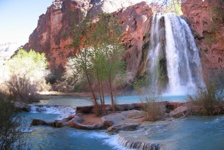 Accade alla tribù degli Havasupai, il popolo che vive nel posto delle acque verdi-azzurre. Questo posto si trova nella zona di Coconino (vedi la mappa) a 150 metri di profondità in uno dei rami del Grand Canyon, in Arizona ed è in una delle zone più aride e siccitose degli Stati Uniti, ma ha una particolarità climatica e naturale che lo preserva parzialmente e che consente di mantenere una vegetazione rigogliosa in un contesto che ha pochi uguali.