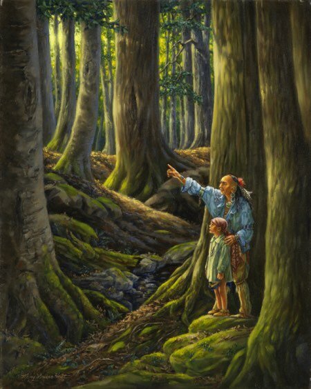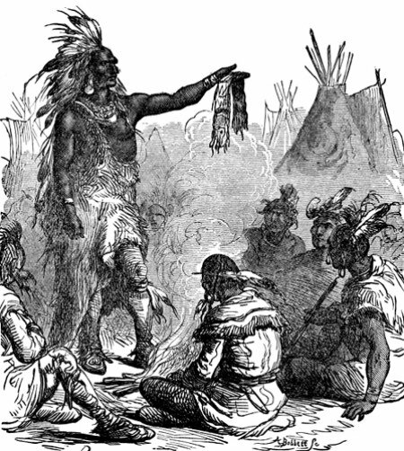 Le leggi del Grande Spirito erano fissate nella mente del ragazzo, poiché sua madre gliele ripeteva sempre. Lei era solita dirgli, mentre lasciava il wigwam: “Onora le persone dai capelli grigi”, o “Tu non imiterai il tuono” “Tu nutrirai sempre l’ affamato e lo straniero” o “Tu ti immergerai nel fiume almeno dieci volte in successione all’inizio della primavera, così che il tuo corpo possa essere forte e tuoi piedi veloci per vincere nel il gioco e seguire il sentiero di guerra”. La sera i membri più anziani della famiglia e alcuni Indiani in visita sedevano intorno al fuoco e interrogavano le pietre sul Grande Spirito e su molti altri strani esseri, alcuni buoni e alcuni cattivi. Essi riferivano anche racconti meravigliosi su presagi e incantesimi. La stessa storia era ripetuta più e più volte, così che in poco tempo il piccolo Pontiac imparò a memoria le leggende Ottawa. Si ricordava e credeva fermamente in tutte le sue storie della vita che aveva ascoltato con stupore, nel wigwam di suo padre.