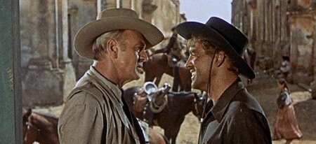“La carovana dei Mormoni”, in parte “Rio Bravo” e “Il grande sentiero” si svolsero nella Moab Valley dell’Utah, come pure “I Comancheros” di Michael Curtiz, “Rio Conchos” di Gordon Douglas, “Ultima notte a Warlock” di Dmytryk e il più recente “Geronimo” di Walter Hill, mentre “In nome di Dio. Il Texano” fu girato in California, con lunghe riprese nella Valle della Morte, un altro deserto dalle sabbie roventi. Questa landa infernale che non poteva certo indurre nessuno a stabilirvisi definitivamente – lo avevano fatto soltanto alcuni banditi in cerca d’argento nel lontano 1873, fondando l’effimera cittadina di Panamint City, divenuta presto una ghost-town – costituì lo scenario di almeno altri 16 film, fra cui “Romantico avventuriero” di Henry King, “Sfida nella città morta” di Sturges e “I professionisti” di Richard Brooks, nonchè della serie televisiva “Death Valley Days”. Invece per “Cavalcarono insieme”, Ford si trasferì a Brackettville e Alamo Village nel Texas, le stesse località in cui Wayne aveva prodotto nel 1959 “La battaglia di Alamo” e dove si svolsero anni dopo le riprese del mediocre “Bad Girls” (1993) di Tamra Davis.