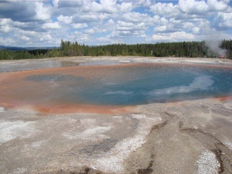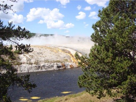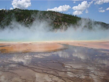 In più di cento anni, il vecchio Old Faithful non ha mai tardato una volta all’appuntamento con i suoi ammiratori. Tutta la zona è come una grande pentola a pressione. Ma non ci solo i geyser.