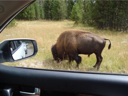 Partiamo di buon ora da Pinedale e arriviamo al gate del parco di Yellowstone dove paghiamo l’entrata con 50 dollari. Un po’ cara decisamente, ma le bellezze del parco ci ripagano l’onere della cifra sborsata. Creato nel 1872, primo parco del mondo, Yellowstone è un’altra delle meraviglie di questo fantastico paese. Foreste senza fine, fiumi, vallate lussureggianti, laghi, canyons e geyser sono quanto di più bello la natura abbia creato nel corso dei secoli. La prima meraviglia che vediamo è “l’Old Faithful”, un geyser che erutta ciò che ribolle nel sottosuolo ogni 75 minuti.