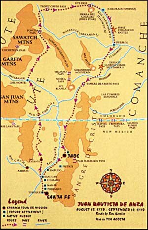 Juan Bautista de Anza, il nuovo Governatore, arrivò a Santa Fe nel Dicembre 1778 e decise, subito, di condurre una dura offensiva contro i Comanches. Ma, al contrario delle precedenti spedizioni punitive Spagnole, che seguivano un itinerario facilmente prevedibile che passava a Nordest delle Sangre de Cristo Mountain fino alle pianure a Est delle Rockies, dove i Comanches avevano i loro villaggi, Anza scelse una nuova via. Nell’Agosto 1779 radunò le sue truppe a San Juan de Los Caballeros, sul Chama River. Era un’armata composta da 600 Spagnoli, miliziani e ausiliari Pueblo ciascuno con un cavallo e almeno un’arma da fuoco. Il 17 Agosto condusse i suoi soldati oltre il Rio Grande nella San Luis Valley del Colorado, viaggiando di notte, per evitare di essere scoperti dagli scouts Comanche. Al Conejos river, 200 guerrieri Utes e Apaches si unirono alle sue forze portando il totale degli uomini a 800. Quindi attraversò il Poncha Pass e penetrò nell’odierno South Park del Colorado, e il 30 Agosto, attraverso la Sierra de Almagre(il Pike Peak). giunse alle pianure.