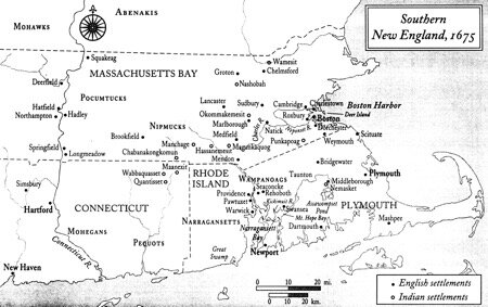 I Wampanoag erano una Nazione indiana stanziata in quello che è ora il Massachusetts sud orientale e nel Rhode Island, ad est della Narragansett Bay. Qualcuno di loro viveva anche a sud, nelle grandi isole di Nantucket e Martha’s Vineyard. Quattro secoli fa, Massasoit, il padre di Metacomet, era il grande sachem dei Wampanoag. Il suo popolo non era costituito da un’unica tribù unita, e non aveva stati, città e paesi con governatori, sindaci e consiglieri, come abbiamo noi. E neanche vivevano in stretta relazione reciproca o votavano per funzionari comuni. Avevano infatti villaggi molto piccoli.