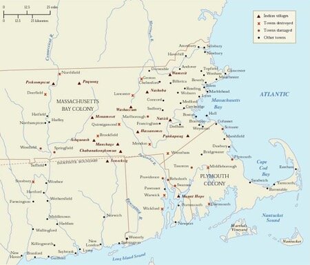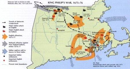 Le differenti tribù Wampanoag che prestavano fedeltà a Metacomet e a suo padre, Massasoit, erano in numero di cinque, oltre le piccole bande delle isole di Nantucket e Martha’s Vineyard. Il villaggio dove viveva il grande sachem era chiamato Pokanoket.
