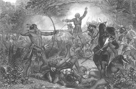 «Poco più tardi, mentre io e molti altri nelle nostre posizioni non avevamo ancora avuto l’occasione di scaricare il fucile e fremevamo d’impazienza, mio zio e due uomini che gli stavano sempre al fianco si scontrarono con tre Indiani, due dei quali si arresero subito. Il terzo, invece, un uomo grande e robusto, con una enorme pelle di serpente a sonagli sulla testa e un aspetto molto selvaggio, fuggì e scomparve nella palude. Mio zio lo inseguì personalmente per un lungo tratto; quando lo raggiunse, gli puntò il fucile nella schiena e tirò il grilletto. Il colpo purtroppo non partì, e allora l’Indiano si voltò precipitosamente e puntò a sua volta il fucile. Ma per fortuna neppure il suo fucile sparò, probabilmente perché, come quello di mio zio, aveva l’innesco inumidito dalla brina del mattino. L’Indiano, poco coraggiosamente, voltò le terga e ricominciò a scappare; ma un piede gli rimase imprigionato in una radice e cadde a terra. Chiese pietà, lamentandosi come un agnello e bestemmiando il nome di Dio con preghiere e invocazioni cattoliche, certo apprese dai nostri mortali nemici francesi; ma mio zio, naturalmente, non lo ritenne degno di pietà e gli scaricò il fucile nella nuca, fulminandolo. Il che, se ce ne fosse bisogno, dimostra che gli Indiani, così coraggiosi e crudeli sul campo di battaglia, quando si trovano in condizioni di inferiorità diventano vili e strepitano come animali feriti.