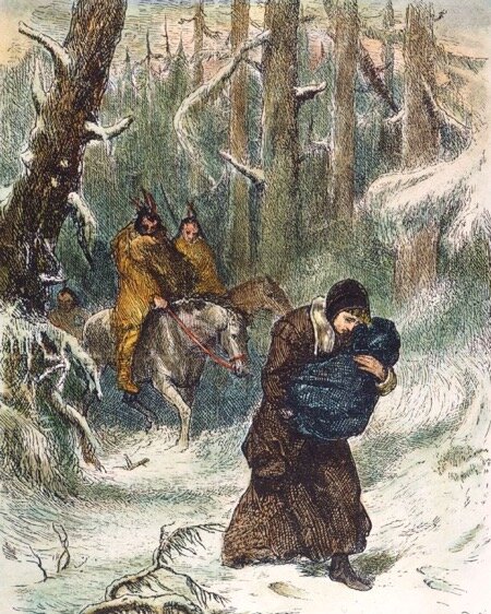 Mary Rowlandson era ferita, e portava in braccio suo figlio, a sua volta ferito. Il bambino morì il 18 febbraio e venne sepolto su una collinetta dagli Indiani. Di sua sorella si prese cura uno dei guerrieri, dal quale apprese che suo figlio era prigioniero in un altro accampamento. Le fu permesso di vedere i suoi bambini e le fu pure consegnata una Bibbia, quando chiese di averla. Dopo molti altri spostamenti con gli Indiani, il 2 maggio 1676 Mary venne infine riscattata per la somma di 20 sterline a Redemption Rock.