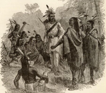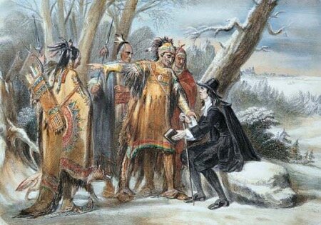 Incontro fra i Narragansett e il teologo Roger Williams (nel 1637) – stampa
