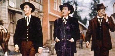 John Ford ne aveva dato una personalissima interpretazione nel 1946 con “Sfida infernale”, giurando che i fatti si fossero svolti realmente in quel modo, sebbene fosse certo di mentire spudoratamente. John Sturges ne cura una riedizione con “Gunfight at the O.K. Corral”, mettendo in campo un cast d’eccezione, da Burt Lancaster (Wyatt Earp) a Kirk Douglas (Doc Holliday) e da John Ireland (Johnny Ringo) a Dennis Hopper (Billy Clanton). I ruoli femminili sono affidati alla rossa Rhonda Fleming (Laura Denbow, personaggio immaginario) e Jo Van Fleet (Kate Fisher, amante di Holliday anche nella realtà storica). Con la bella fotografia di Charles Lang, la sceneggiatura scorre facilmente sotto la sapiente mano di Leon Uris (scrittore di grido, autore di “Exodus”) mentre Dimitri Tiomkin si supera ancora una volta componendo il motivo conduttore del film, cantato dal notissimo Frankie Laine, che venderà, con le sue interpretazioni di motivi western, milioni di dischi.