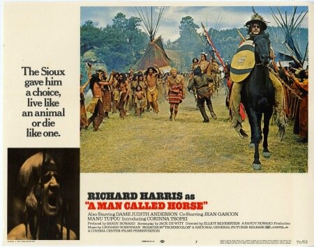 Il primo soggetto scaturisce da una short story di Dorothy M. Johnson, già autrice di “L’uomo che uccise Liberty Valance”. Il regista Elliot Silverstein, supportato dallo sceneggiatore Jack DeWitt, realizza il film omonimo (“A Man Called Horse”) con Richard Harris nei panni del nobile inglese John Morgan finito nelle mani dei Sioux nel corso di una battuta di caccia negli Stati Uniti. Suoi partner sono, nella versione originale, Testa di Bisonte Femmina (Judith Anderson) Baptiste (Jean Bason) Cervo Che Corre (Corinna Tsopei) – Tortora Bianca nell’edizione italiana – Aquila Nera (Eddie Little Sky) ed altre figure di appartenenza nativa; oltre alle usanze tribali, come la consacrazione del guerriero con la durissima prova di resistenza al dolore cui Morgan viene sottoposto, perfino il linguaggio parlato nel film si basa in gran parte sull’idioma originale dei Lakota.