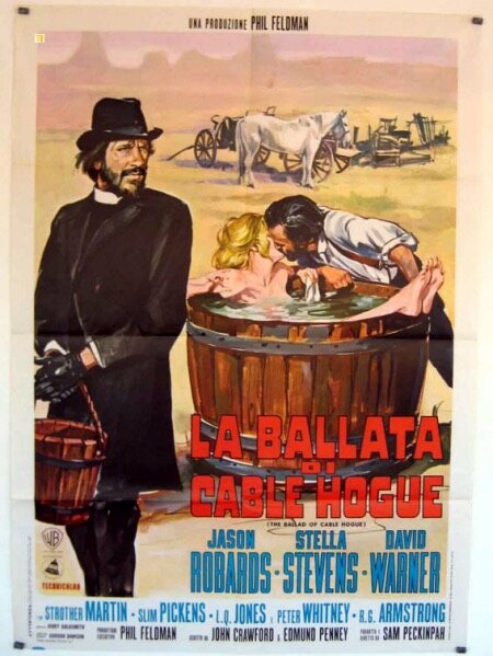 “La ballata di Cable Hogue”, di Peckinpah, assume dei toni crepuscolari come nei due precedenti film dello stesso regista. Se i due ex sceriffi di “Sfida nell’alta sierra” sono dei relitti disorientati dal nuovo West che si sta adattando al progresso e i banditi senza scopo de “Il mucchio selvaggio” vanno coscientemente incontro al proprio sacrificio convinti di battersi finalmente per una causa giusta, Cable Hogue è un disperato che insegue un sogno. Un’illusione, quella di costruire una stazione per le diligenze in transito vicino ad una pozza d’acqua in una regione desertica, che la tecnologia manda in frantumi, perché la diffusione delle automobili rende vano il suo progetto. Anzi, per ironia della sorte, sarà proprio il progresso, dopo avere vanificato tutti gli sforzi di Hogue, a determinarne la fine, facendolo finire sotto le ruote di un’auto. La colonna sonora è di Jerry Goldsmith e Richard Gillis, la fotografia del solito, bravissimo, Lucien Ballard.